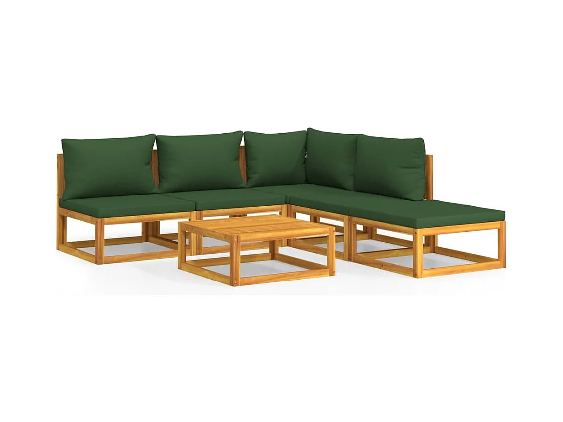 Salon de jardin 6 pcs avec coussins vert bois massif