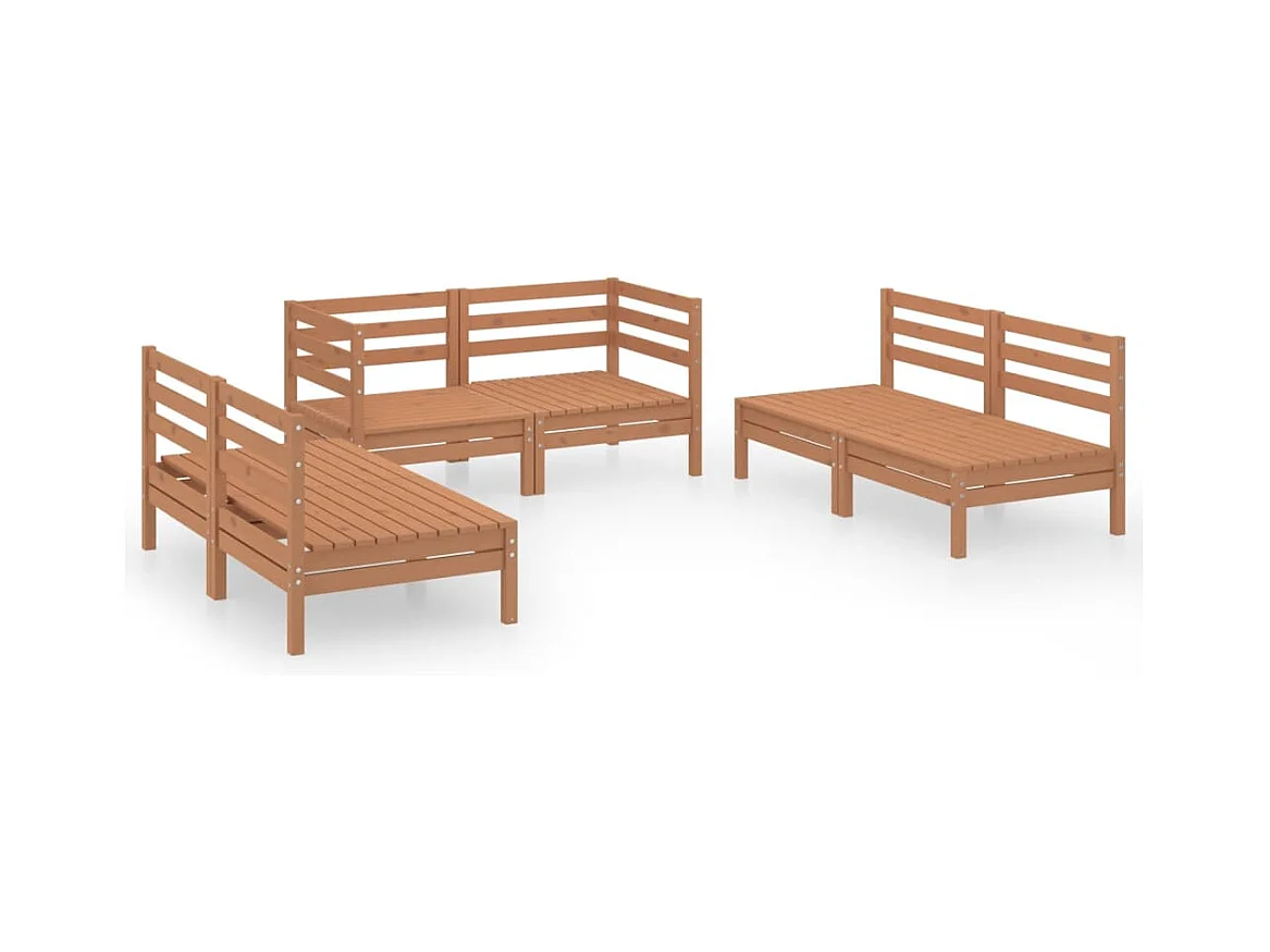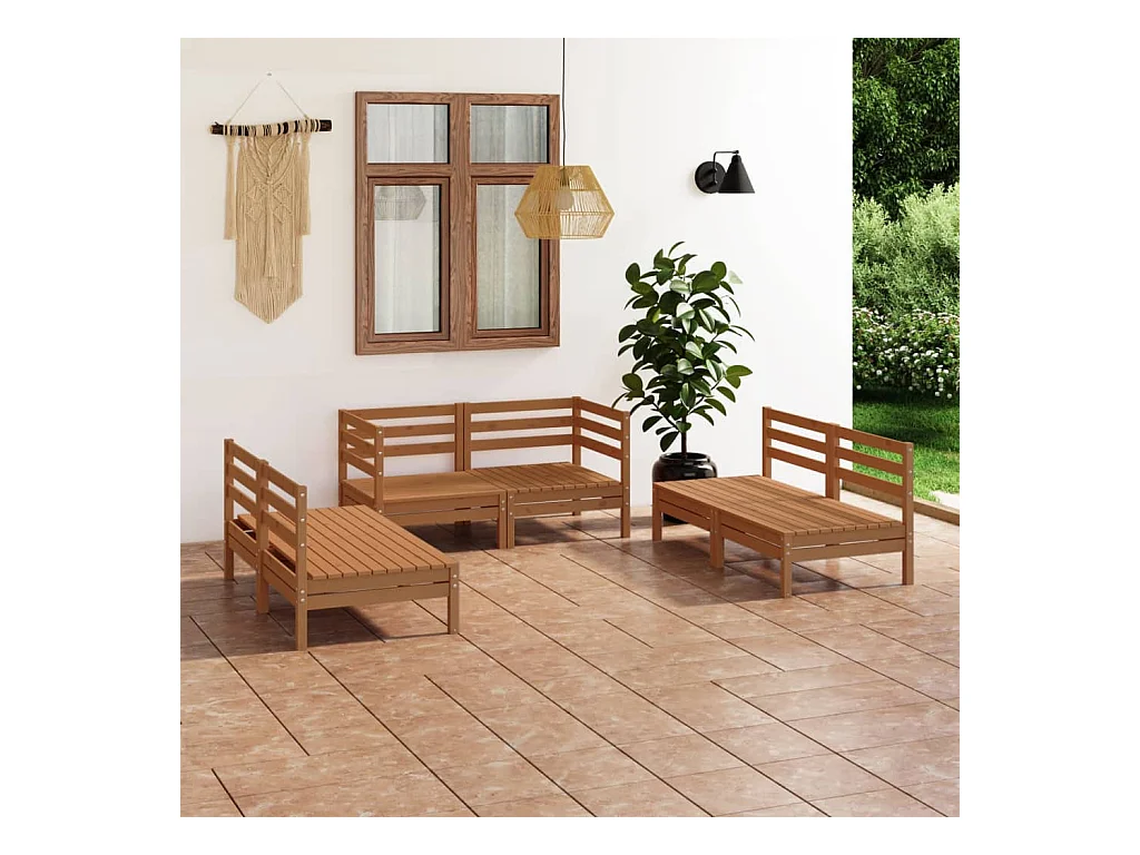Salon de jardin 6 pcs Marron miel Bois de pin massif BE98038