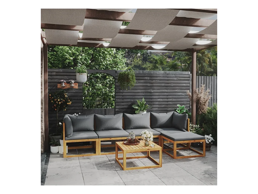 Salon de jardin 6 pièces avec coussin Bois d'acacia solide