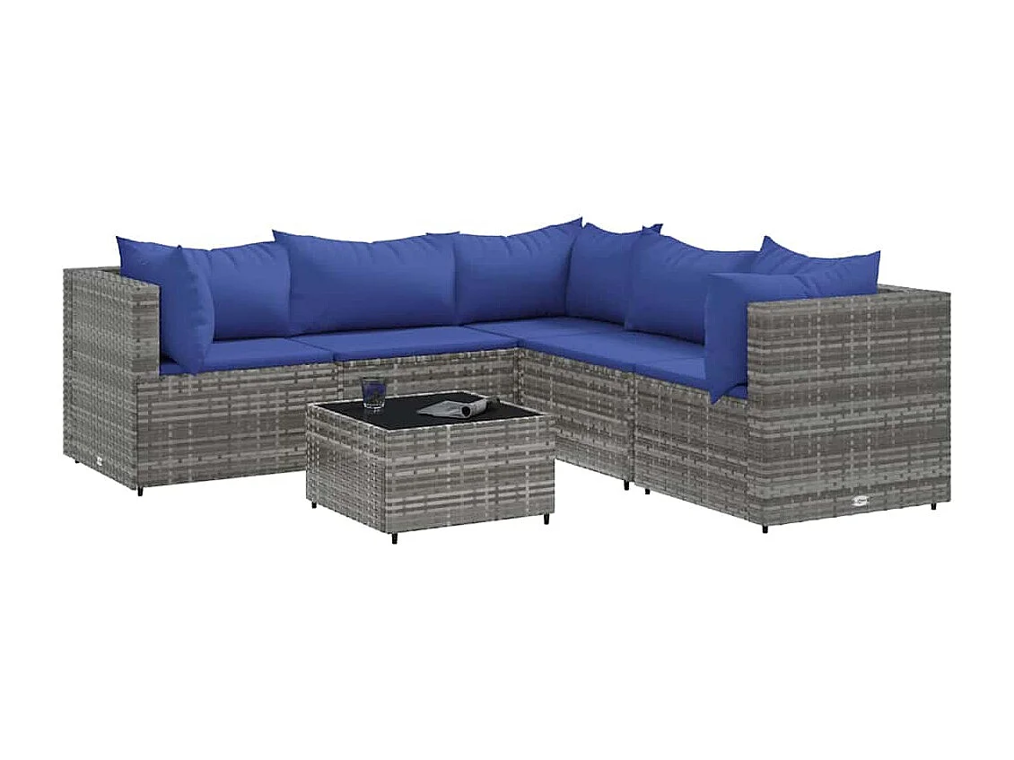 Salon de jardin 6 pièces avec coussins Gris Résine tressée