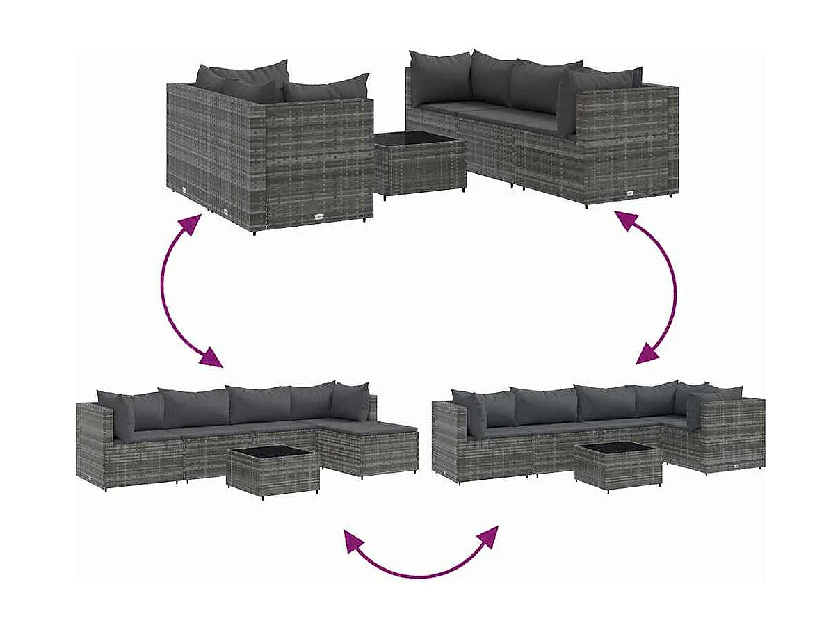 Salon de jardin 6 pièces avec coussins Gris Résine tressée