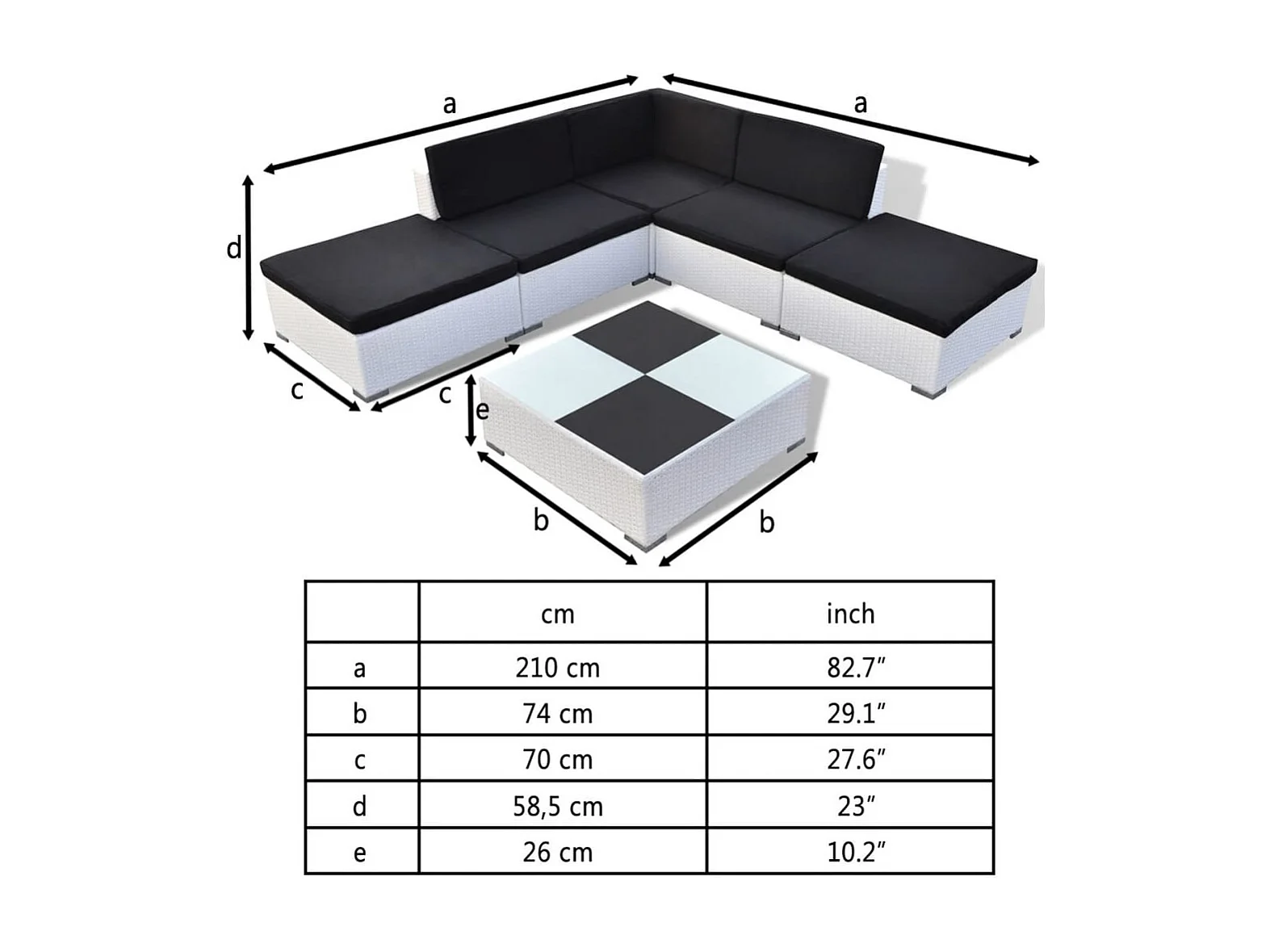 Salon de jardin 6 pièces avec coussins Résine tressée Blanc