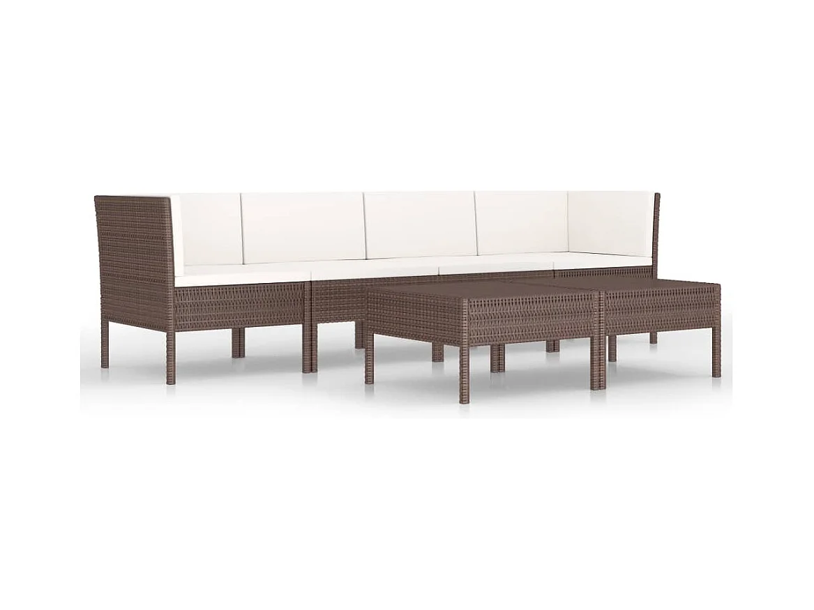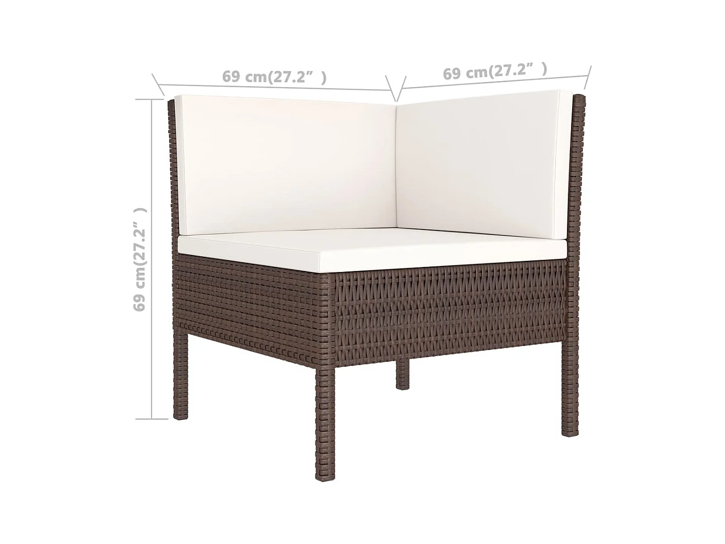 Salon de jardin 6 pièces avec coussins Résine tressée Marron