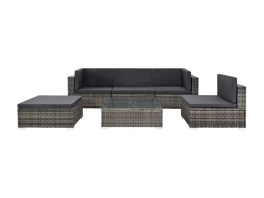 Salon de jardin 6 pièces résine tressée coussins gris foncé Blanca