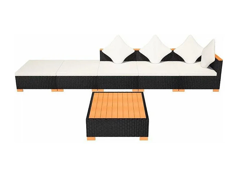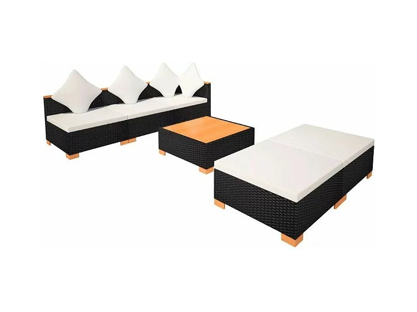 Salon de jardin 6 pièces résine tressée noir coussins blancs Kimberly