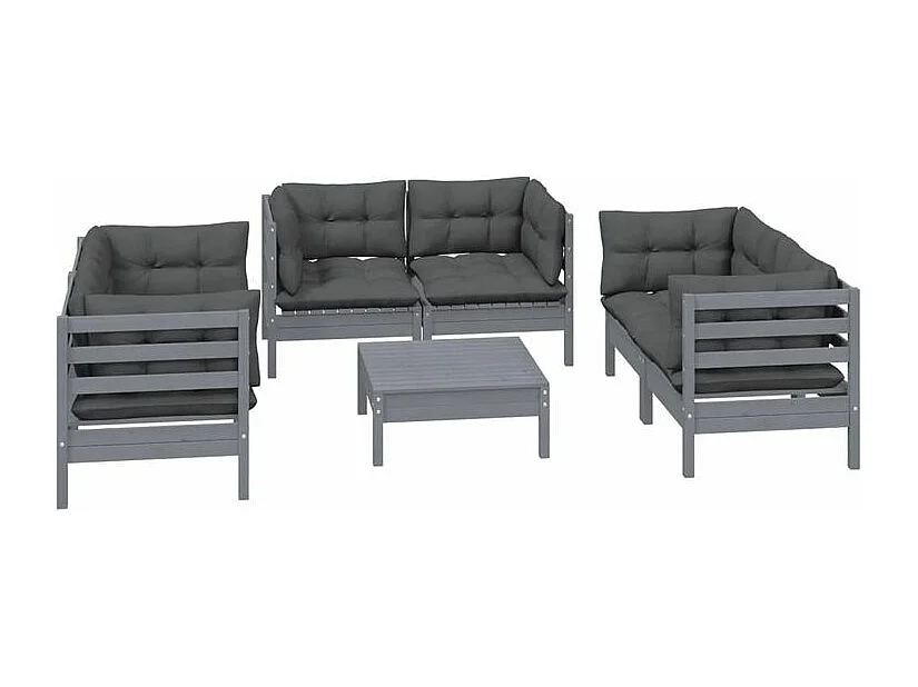 Salon de jardin 7 pcs avec coussins bois de pin massif