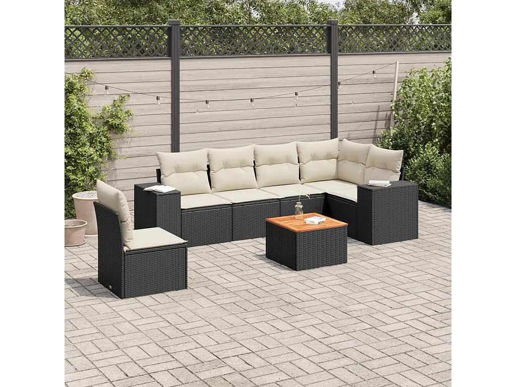 Salon de jardin 7 pcs avec coussins noir résine tressée