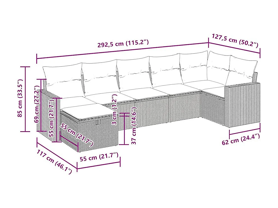 Salon de jardin 7 pcs avec coussins noir résine tressée