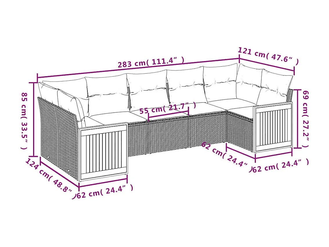 Salon de jardin 7 pcs avec coussins noir résine tressée