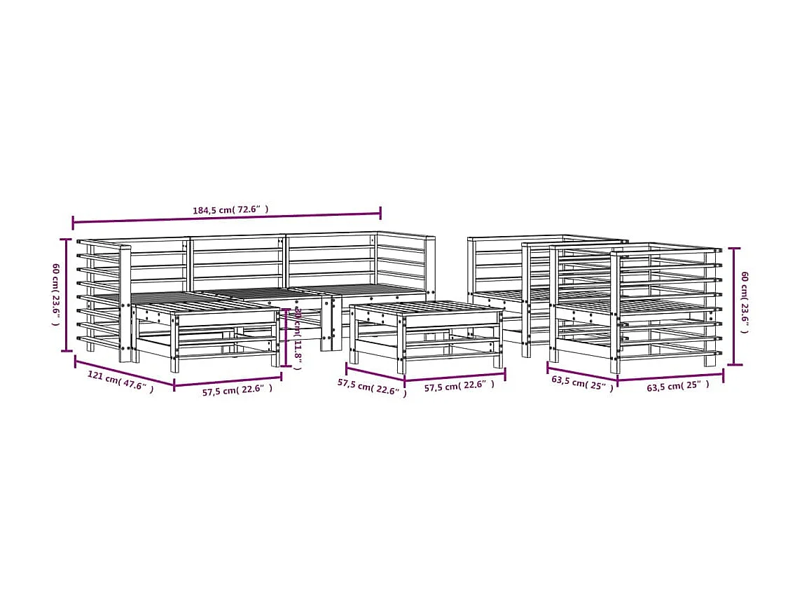 Salon de jardin 7 pcs Blanc Bois de pin massif