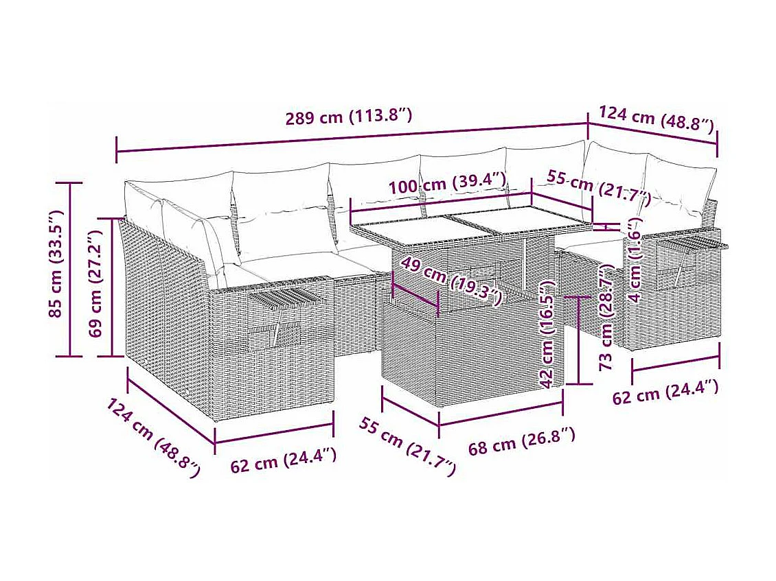 Salon de jardin 8 pcs avec coussins marron résine tressée