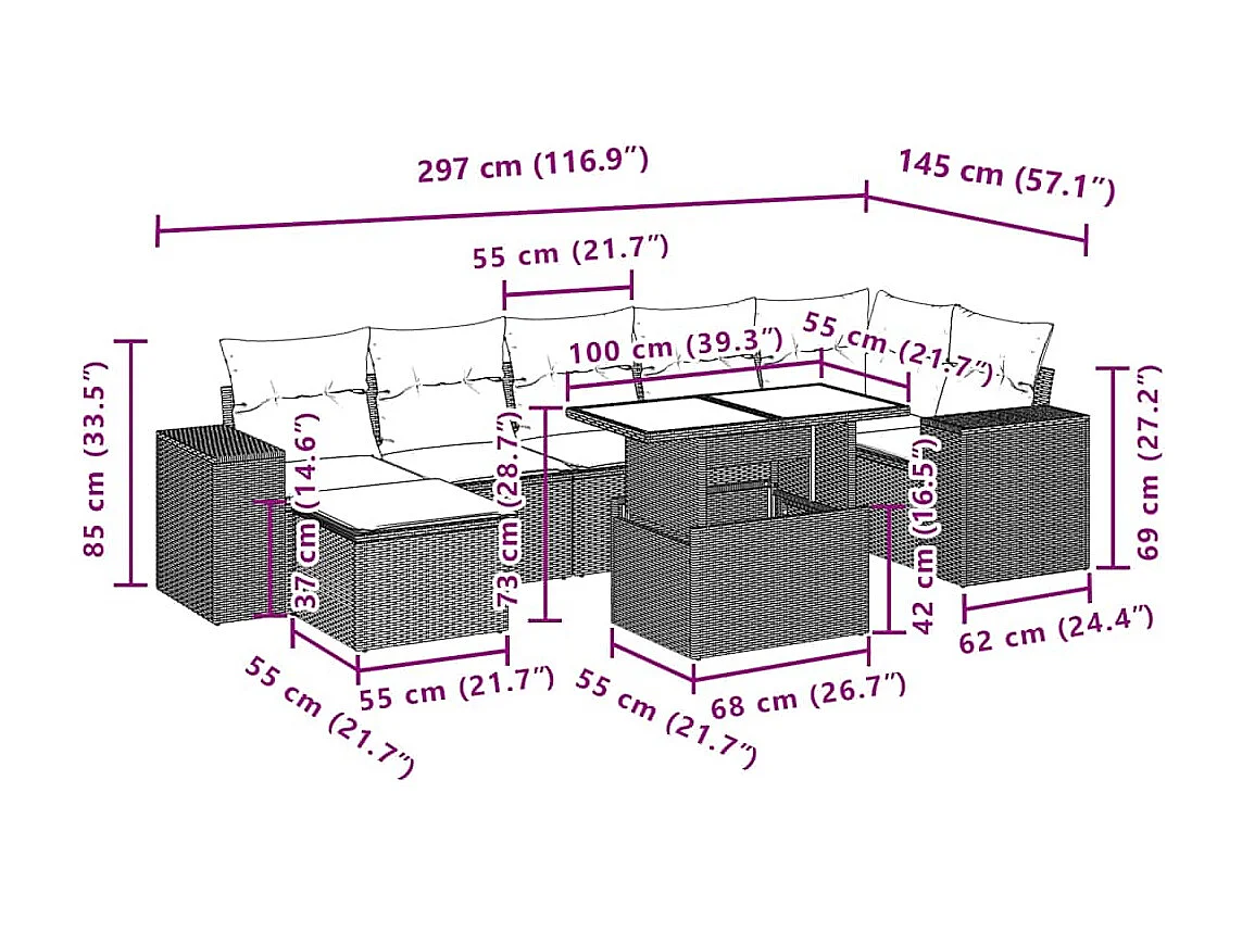 Salon de jardin 8 pcs avec coussins marron résine tressée