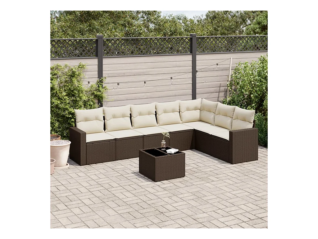 Salon de jardin 8 pcs avec coussins marron résine tressée