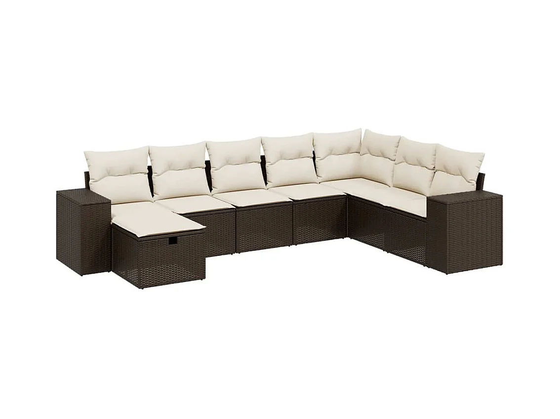 Salon de jardin 8 pcs avec coussins marron résine tressée