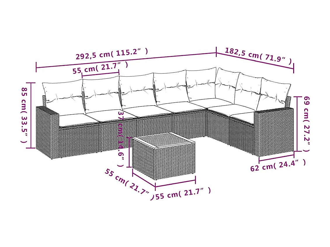 Salon de jardin 8 pcs avec coussins noir résine tressée