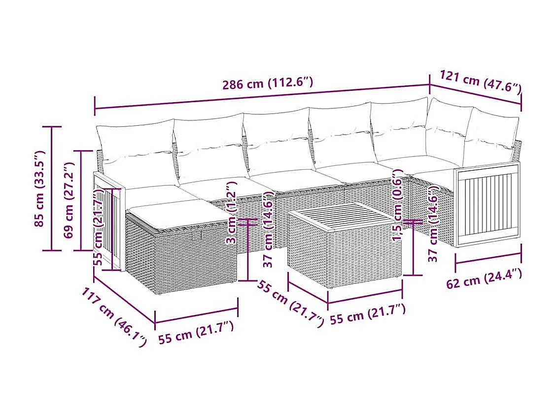 Salon de jardin 8 pcs avec coussins noir résine tressée
