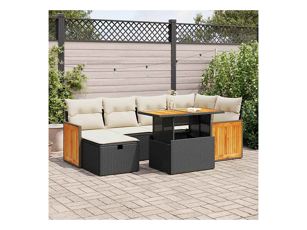 Salon de jardin 8 pcs avec coussins noir résine tressée