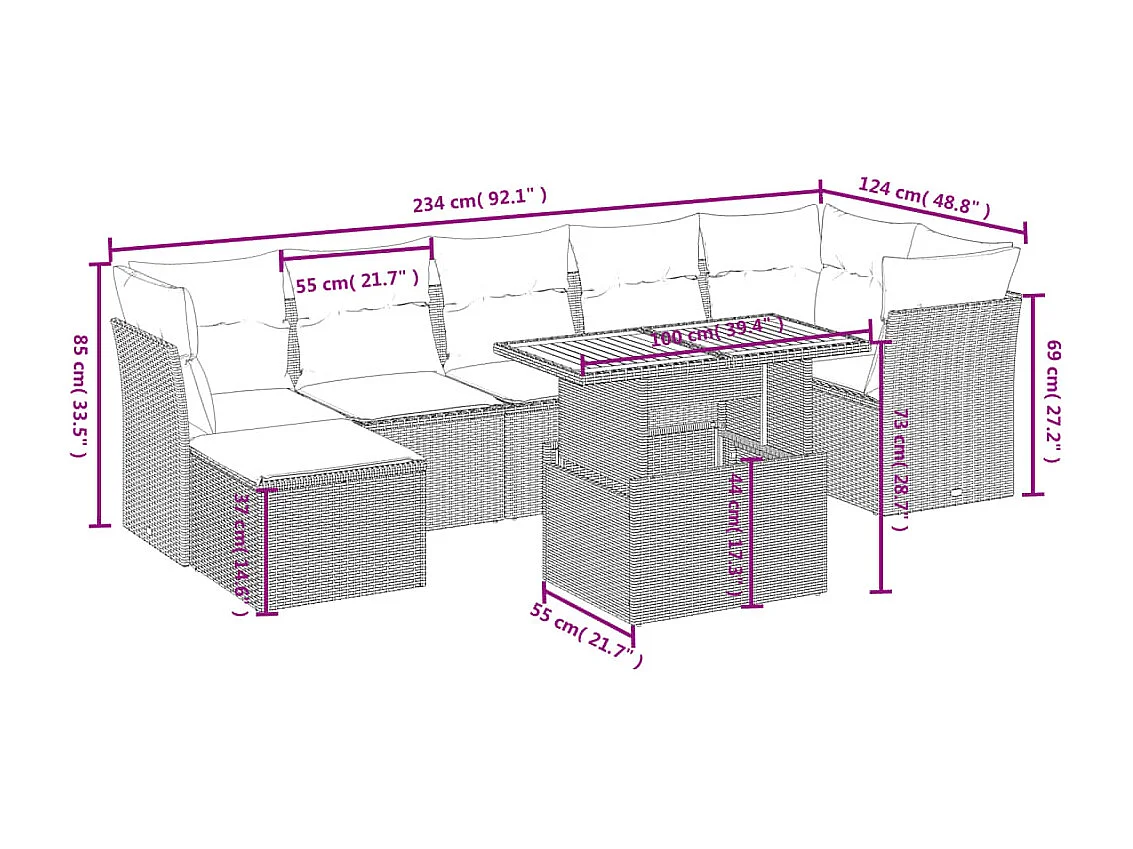Salon de jardin 8 pcs avec coussins noir résine tressée