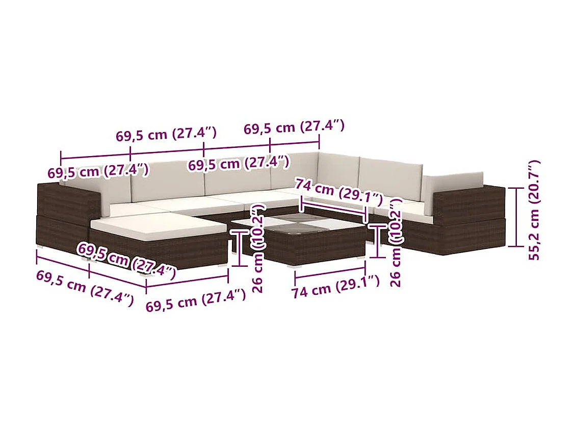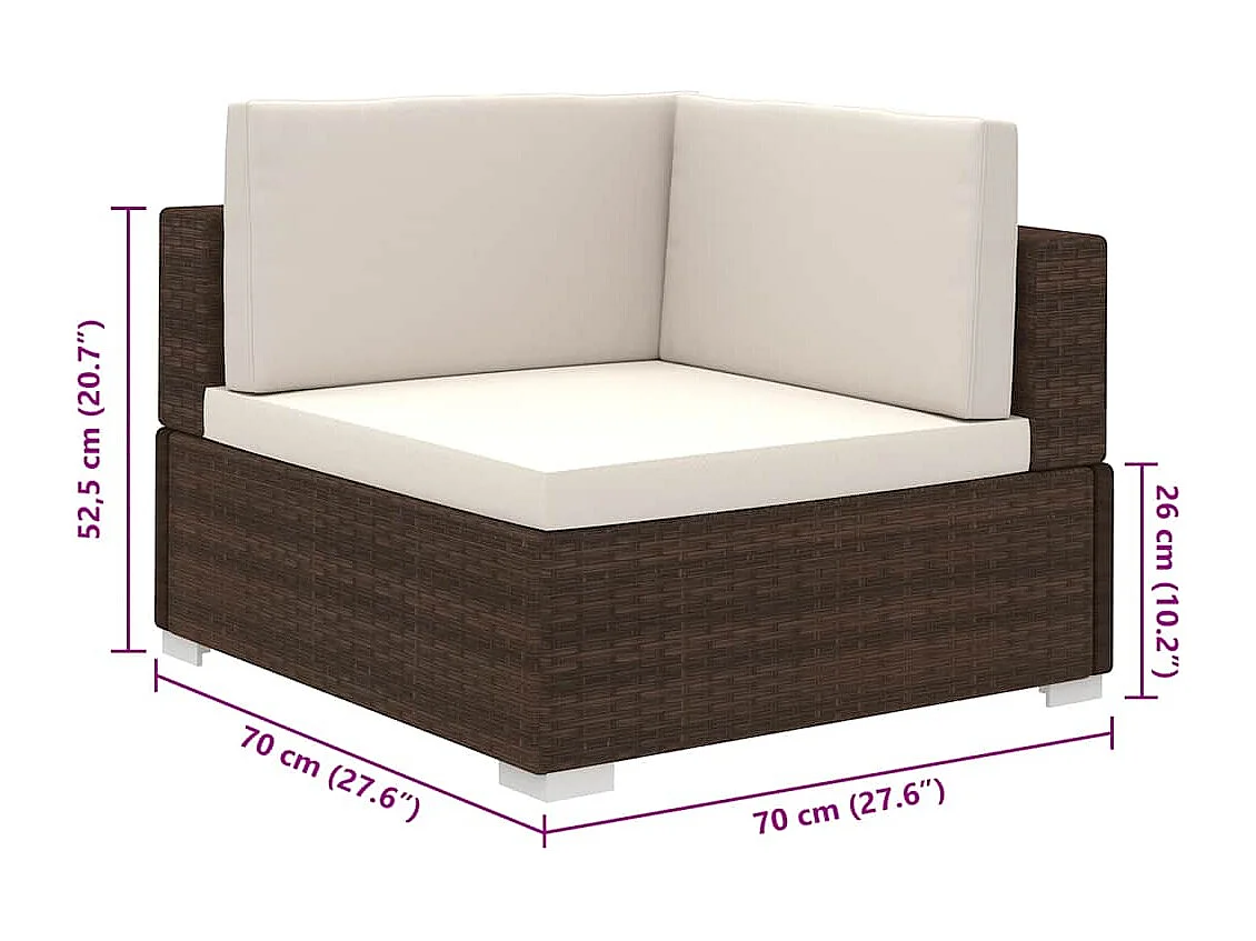 Salon de jardin 8 pcs avec coussins Résine tressée Marron
