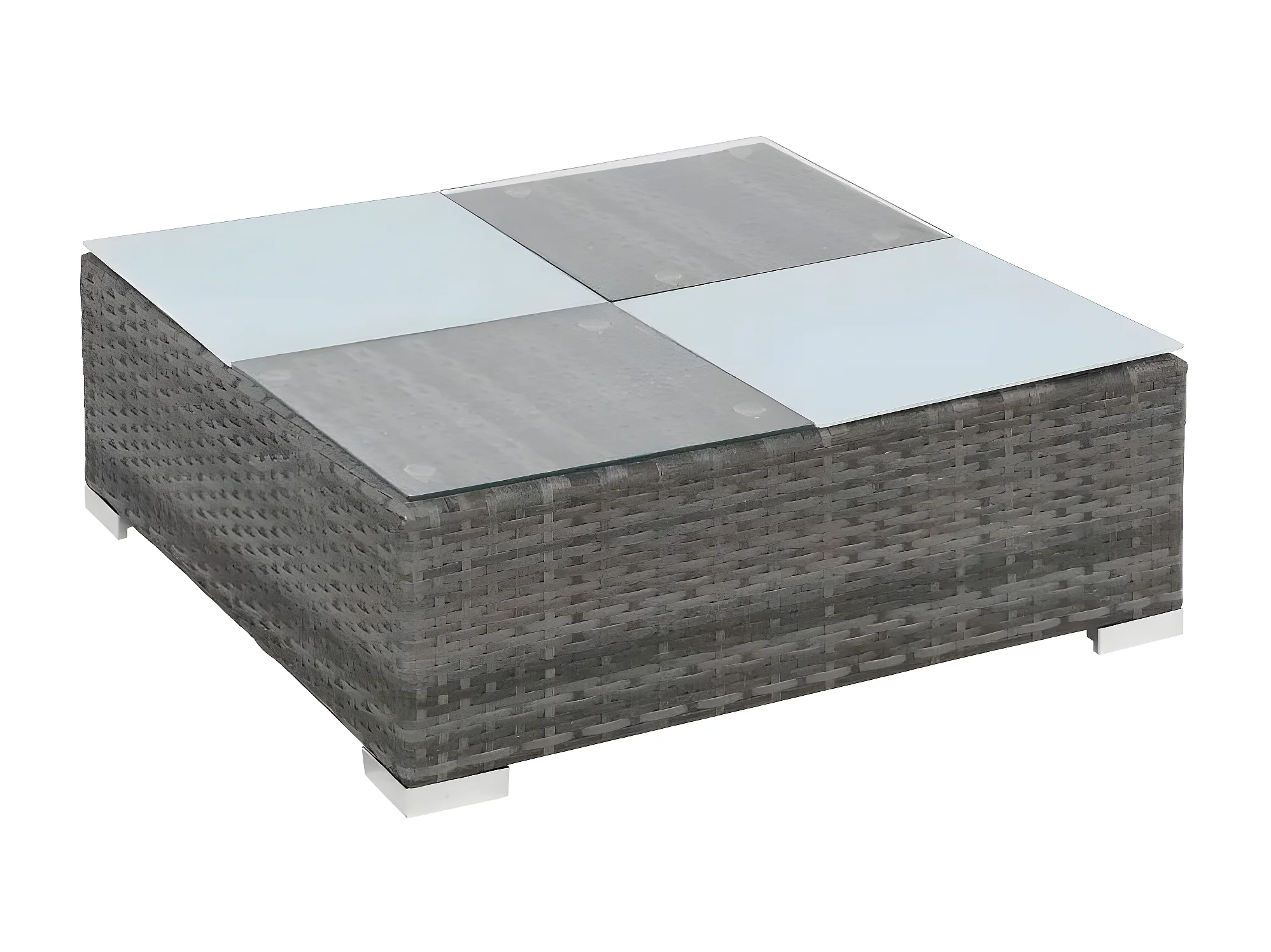 Salon de jardin 8 pièces résine tressée coussins gris et rouge Kim