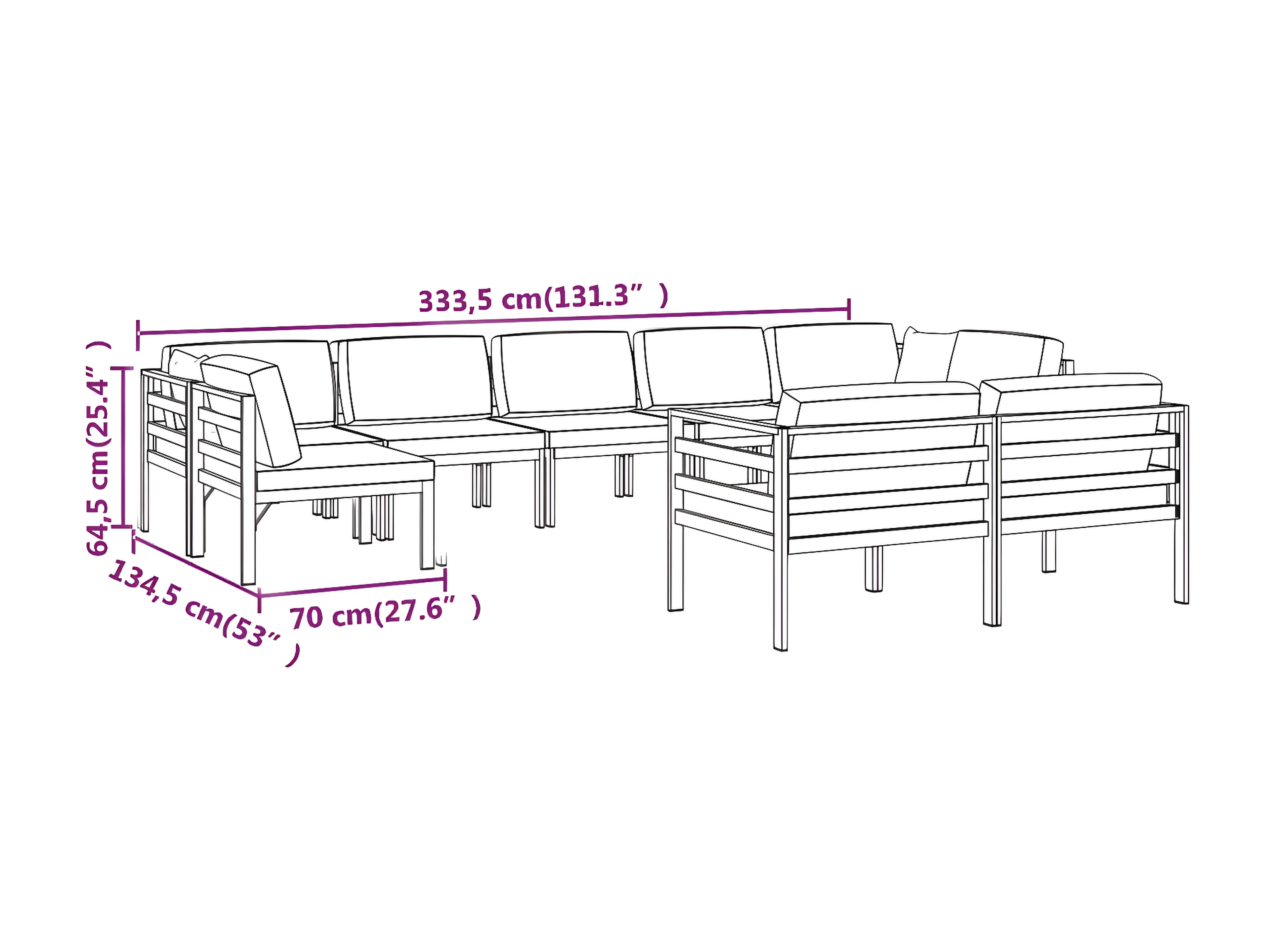 Salon de jardin 9 pcs avec coussins Aluminium Anthracite