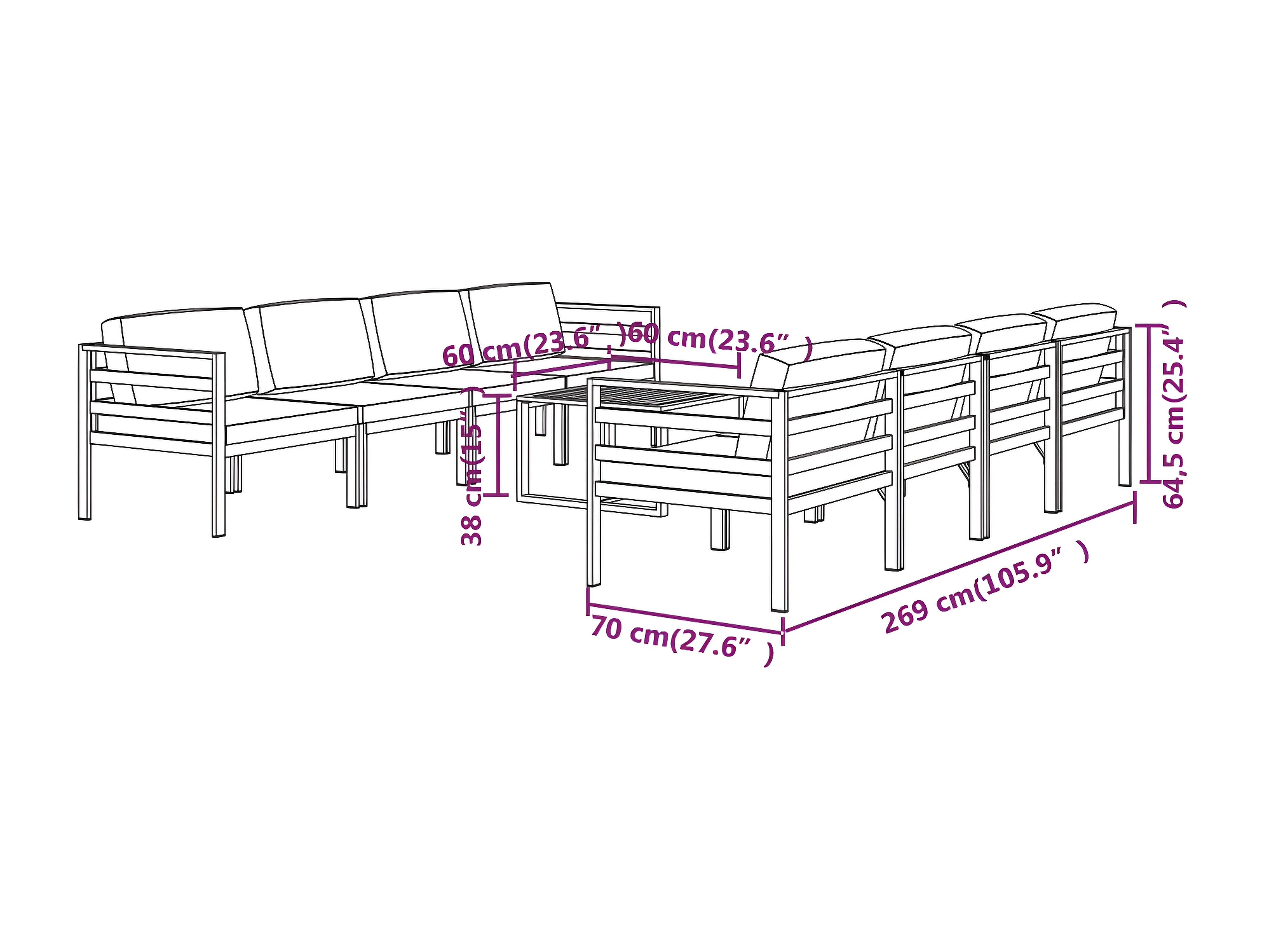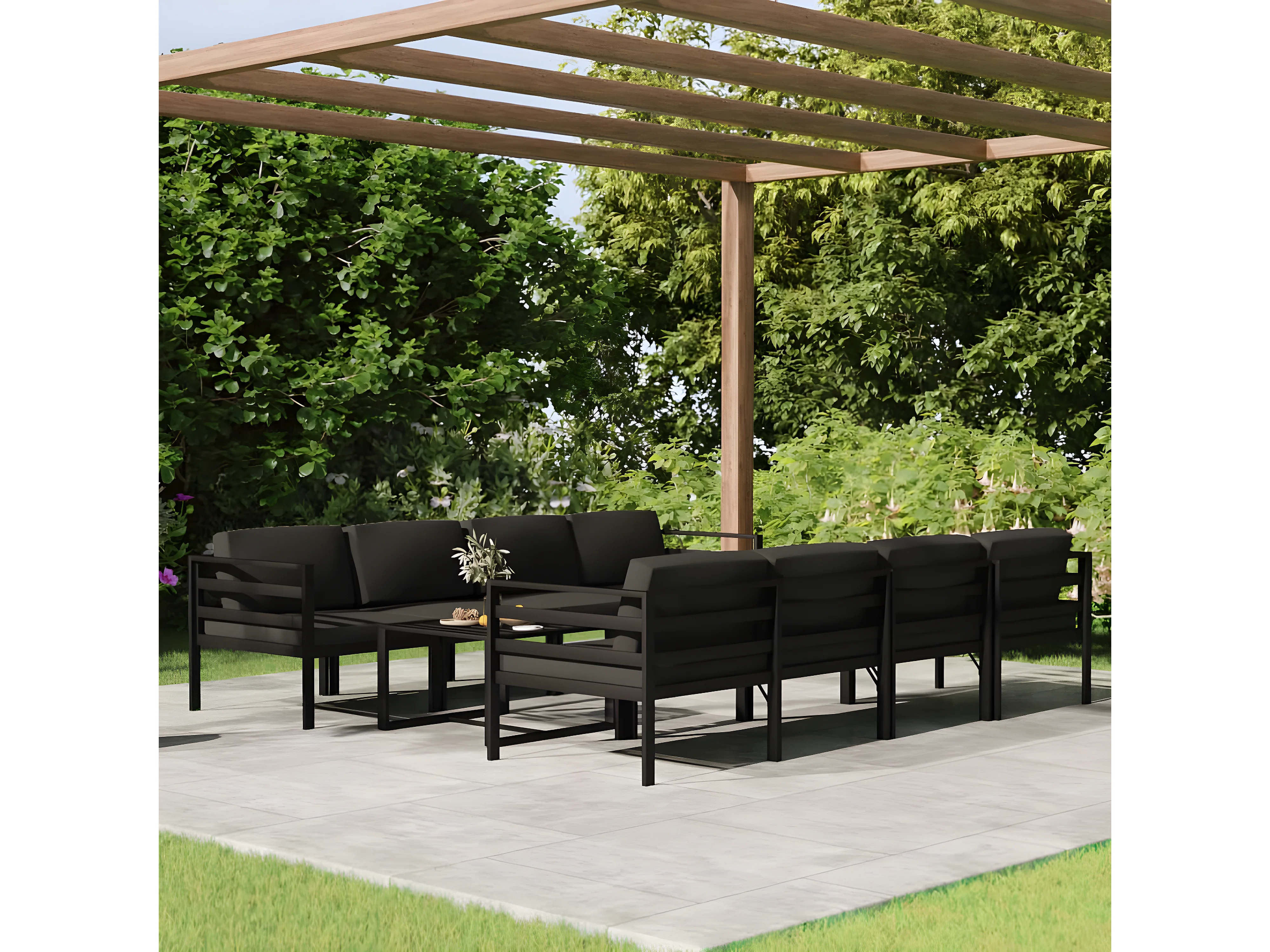Salon de jardin 9 pcs avec coussins Aluminium Anthracite 3