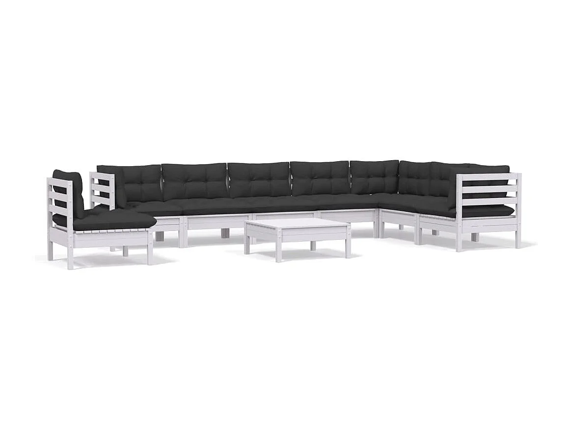 Salon de jardin 9 pcs avec coussins Blanc Bois de pin solide