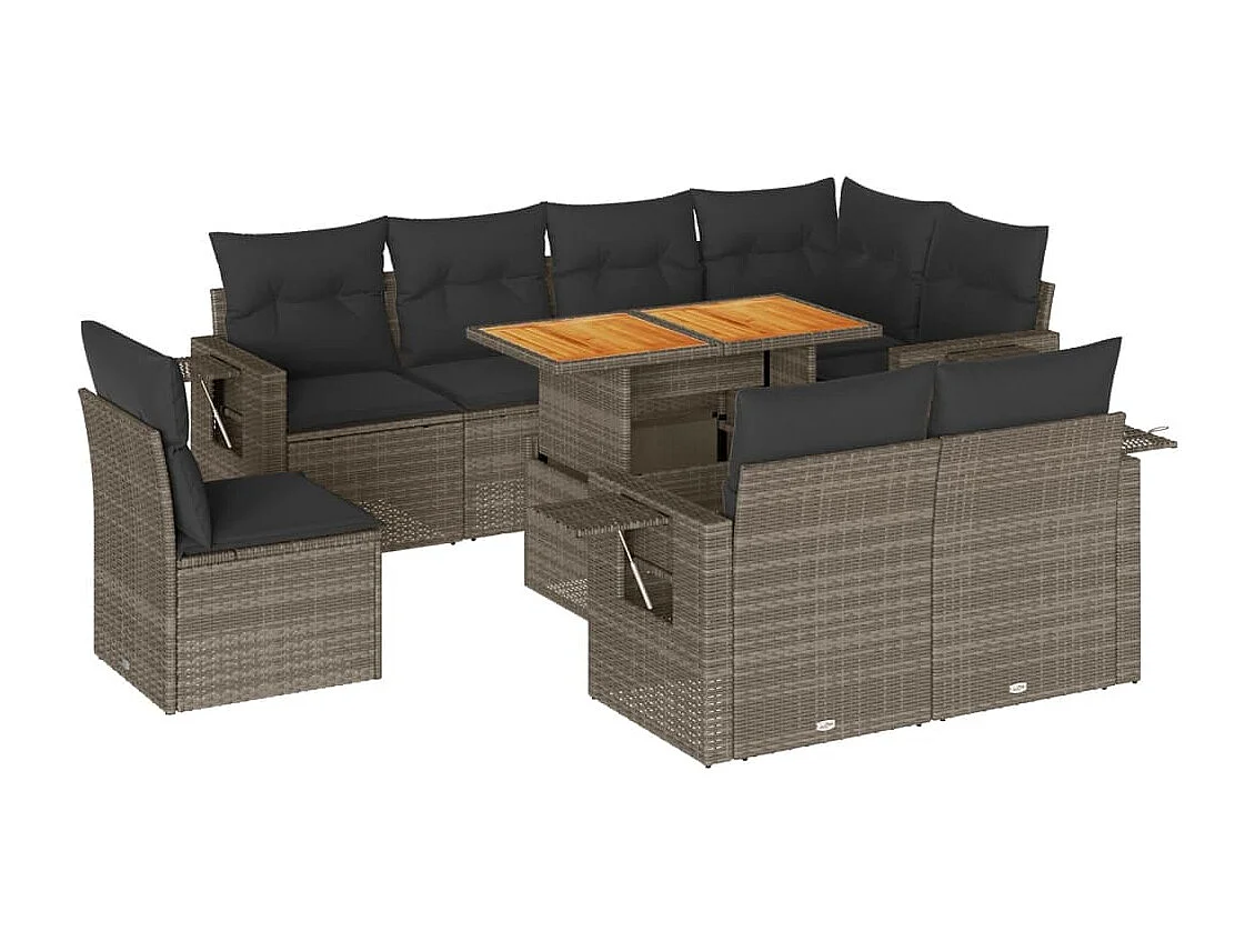 Salon de jardin 9 pcs avec coussins gris résine tressée