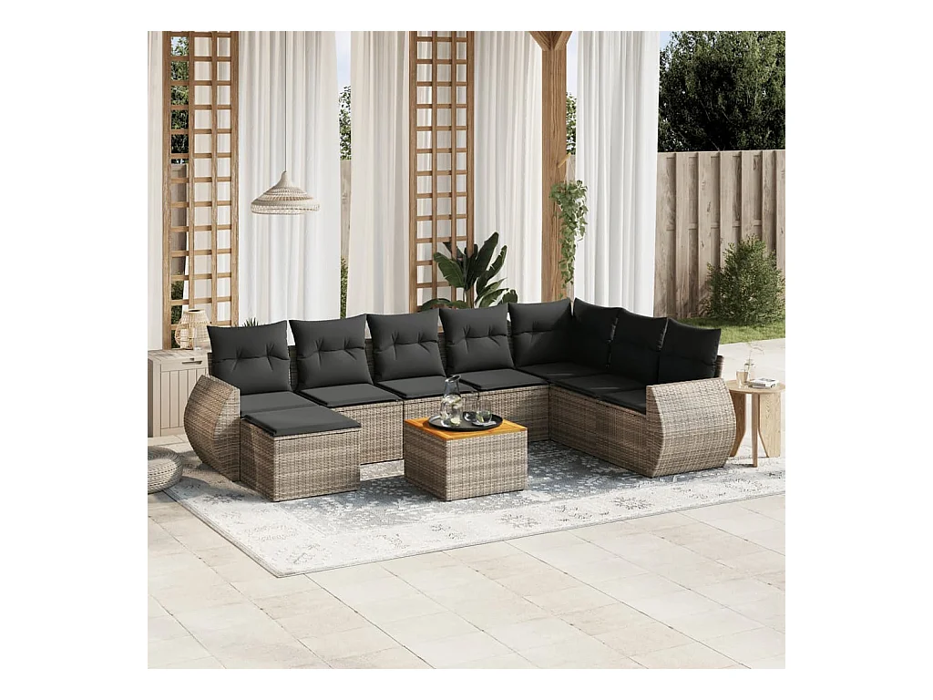Salon de jardin 9 pcs avec coussins gris résine tressée