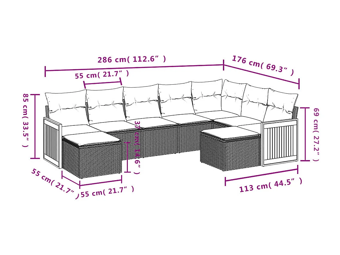 Salon de jardin 9 pcs avec coussins gris résine tressée
