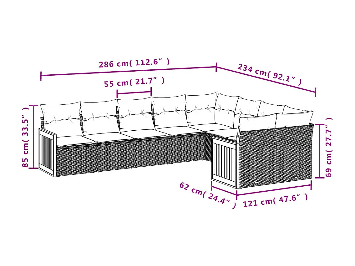 Salon de jardin 9 pcs avec coussins noir résine tressée