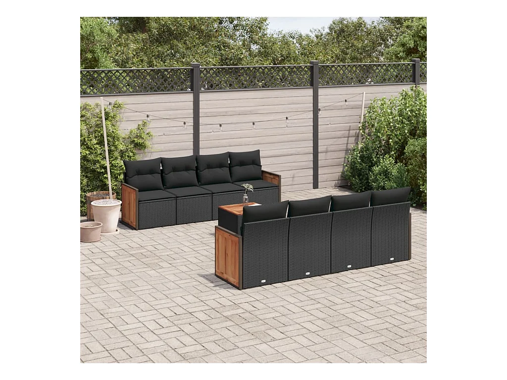 Salon de jardin 9 pcs avec coussins noir résine tressée
