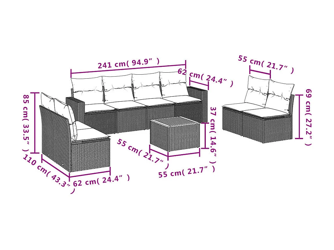Salon de jardin 9 pcs avec coussins noir résine tressée