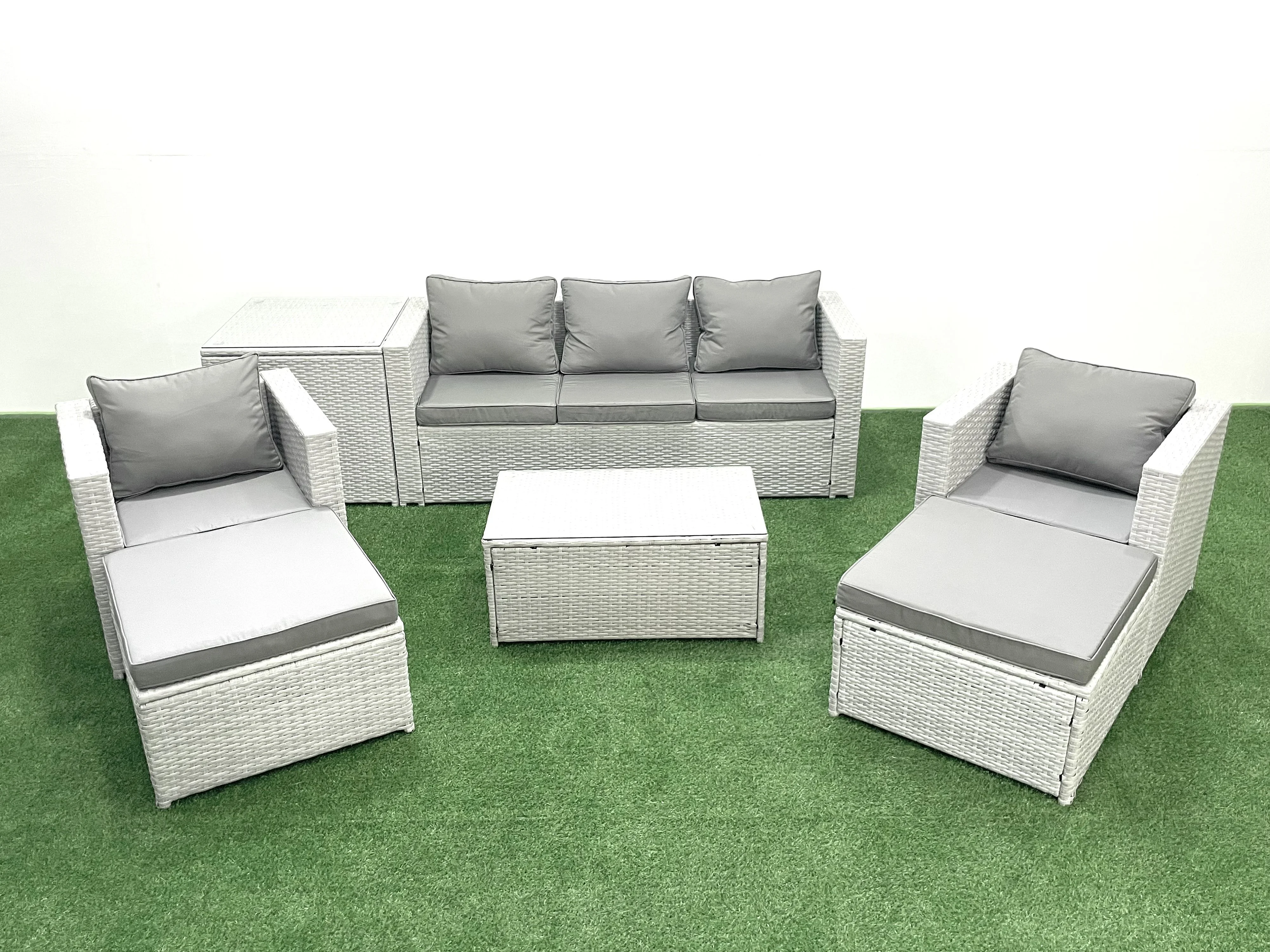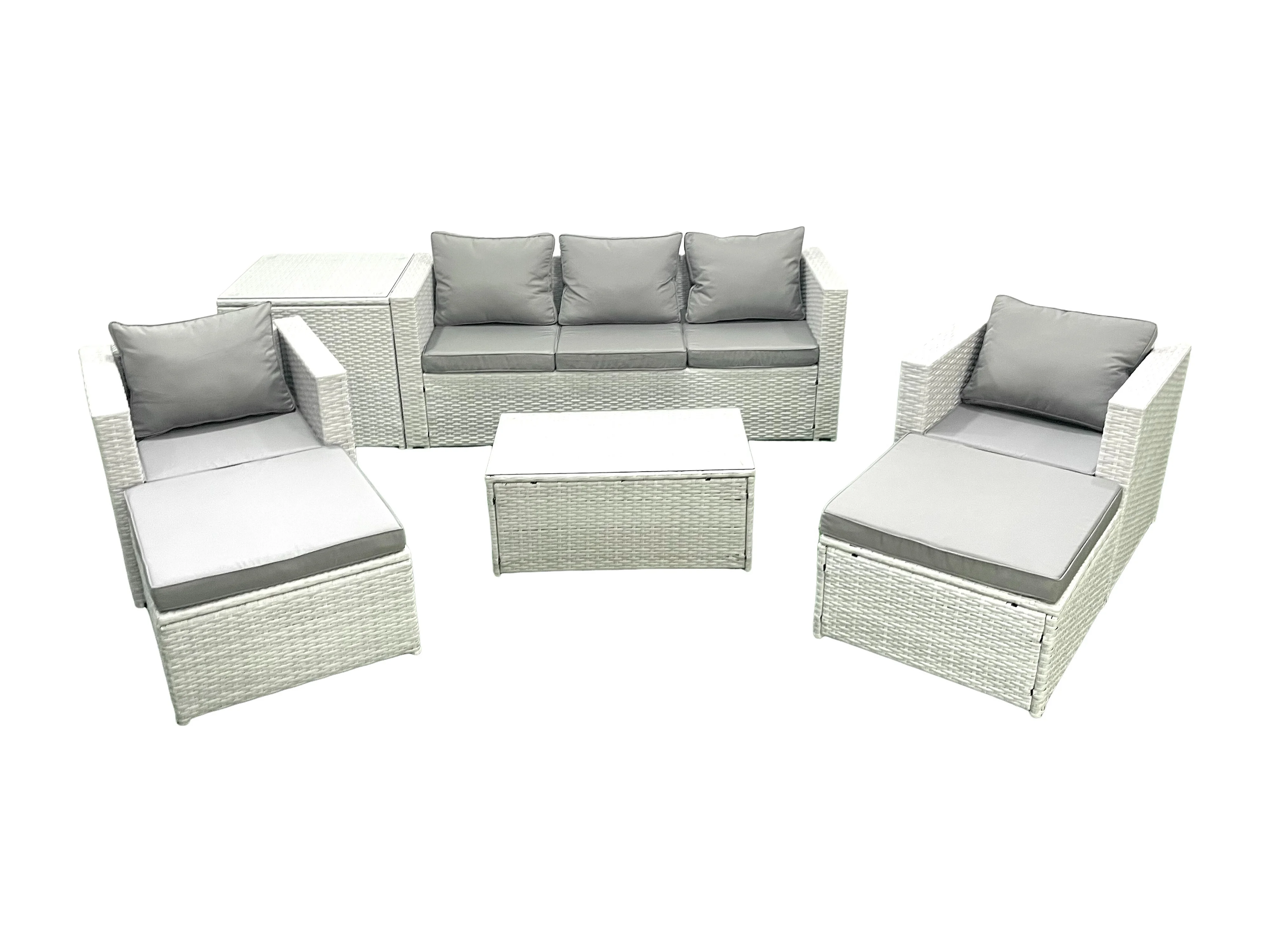 Salon de jardin avec Canapé 3 places 2 Chaise Table basse rectangulaire 2 Grand tabourets Table d'appoint Gris clair mixte 7 places