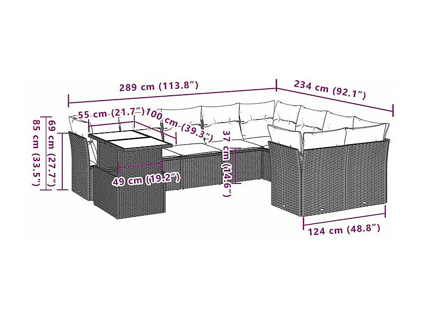 Salon de jardin avec coussins 10 pcs beige résine tressée
