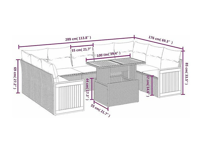 Salon de jardin avec coussins 10 pcs beige résine tressée