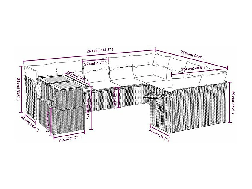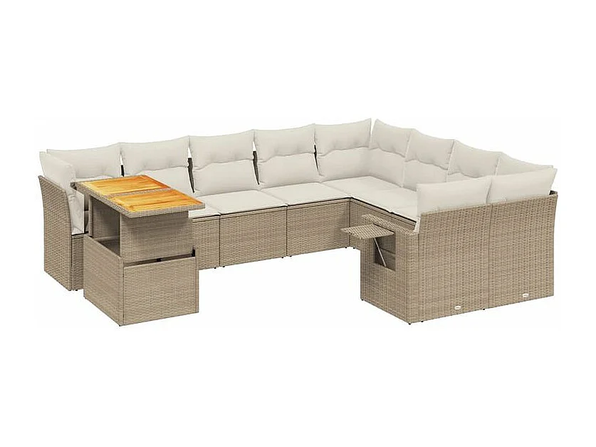 Salon de jardin avec coussins 10 pcs beige résine tressée