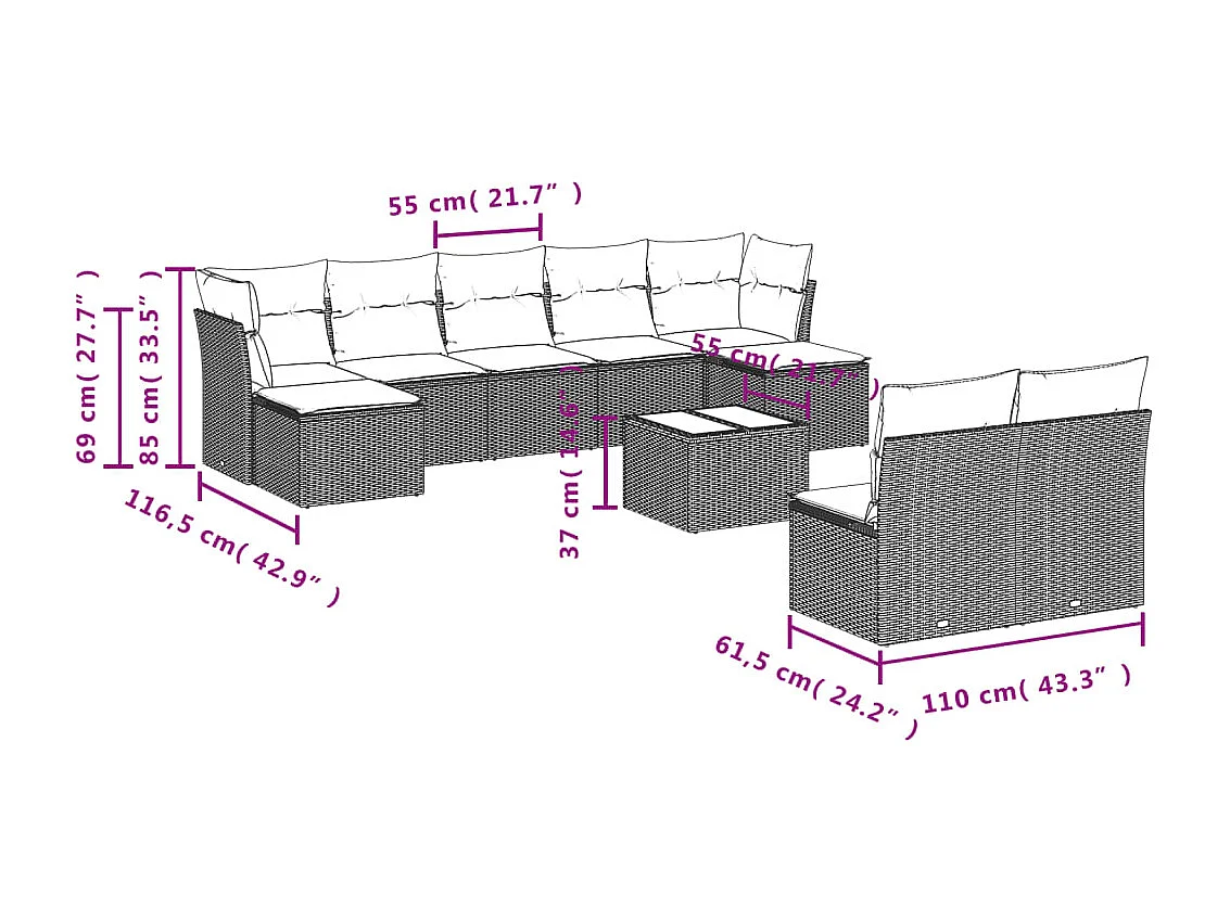 Salon de jardin avec coussins 10 pcs beige résine tressée