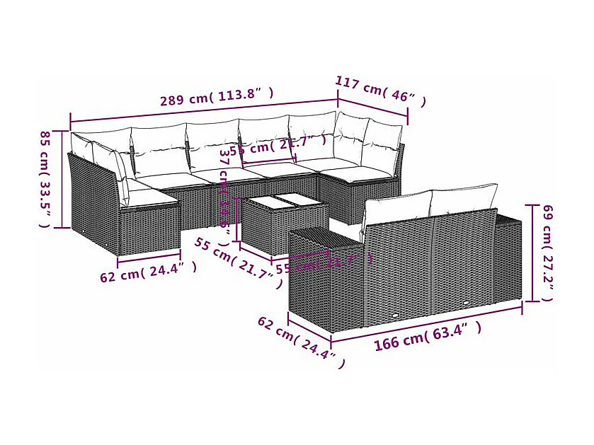 Salon de jardin avec coussins 10 pcs gris clair résine tressée