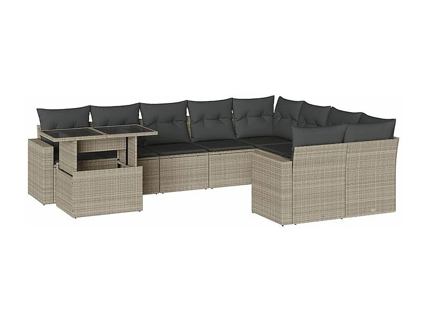 Salon de jardin avec coussins 10 pcs gris clair résine tressée