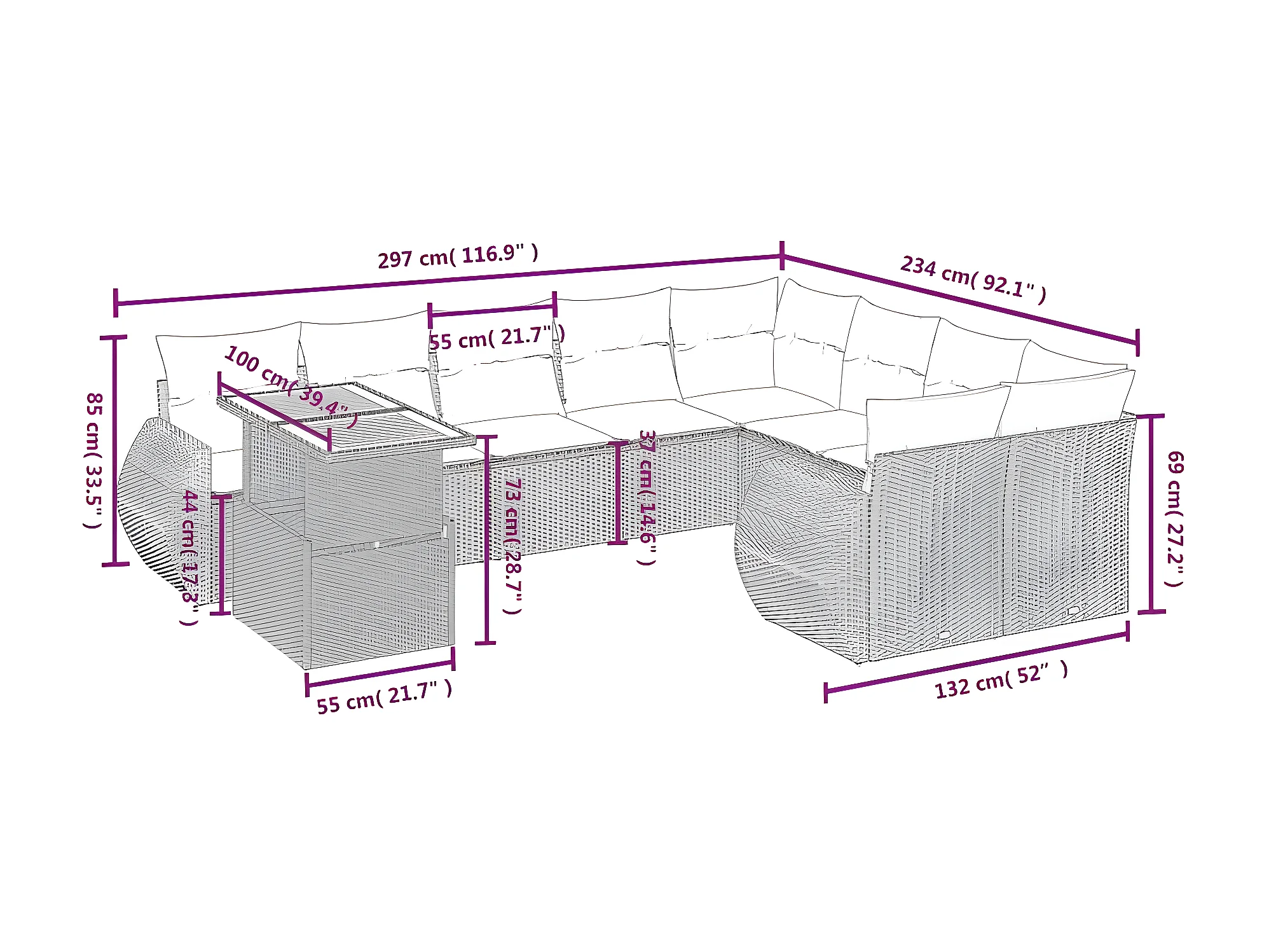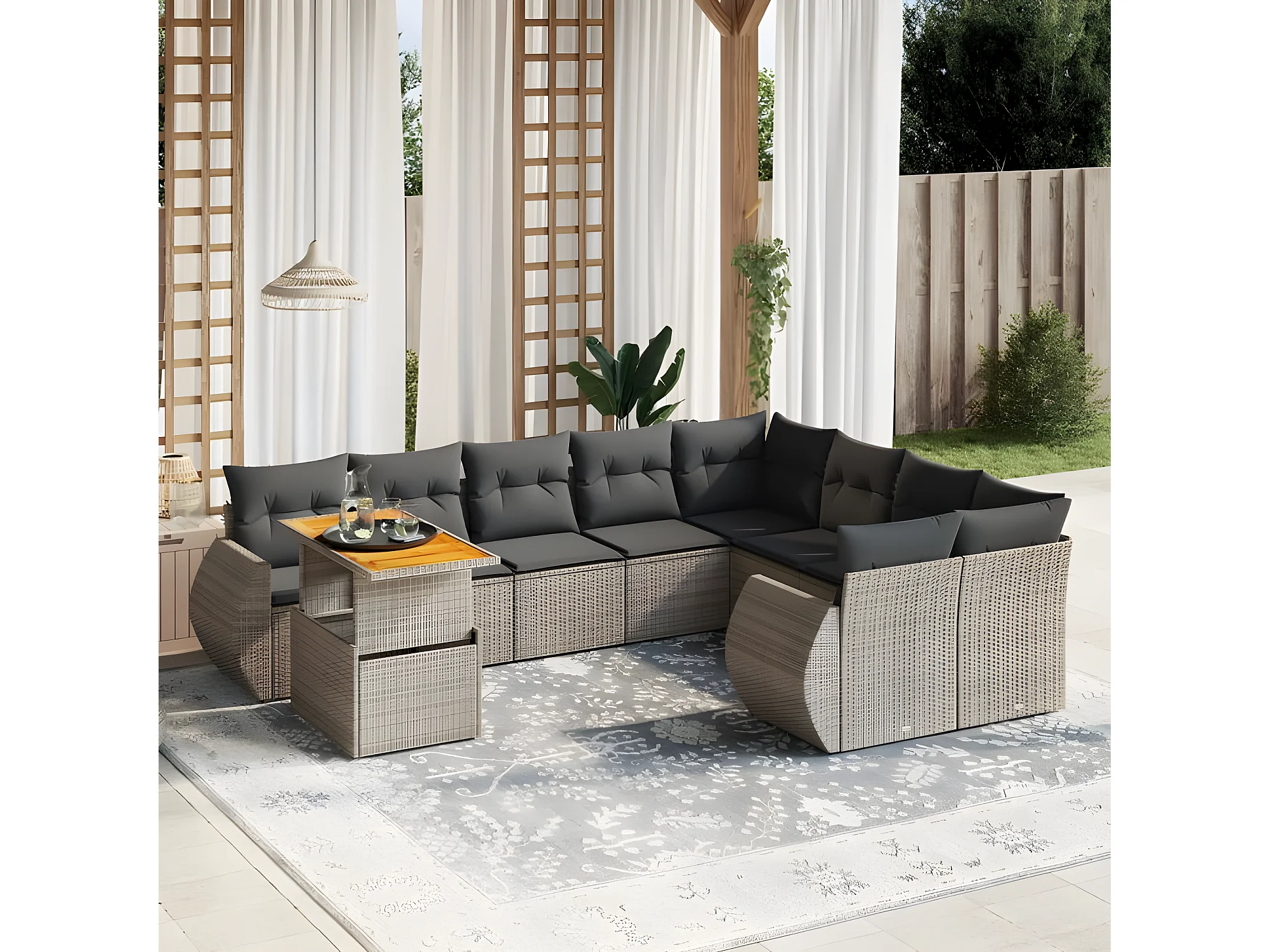 Salon de jardin avec coussins 10 pcs gris résine tressée