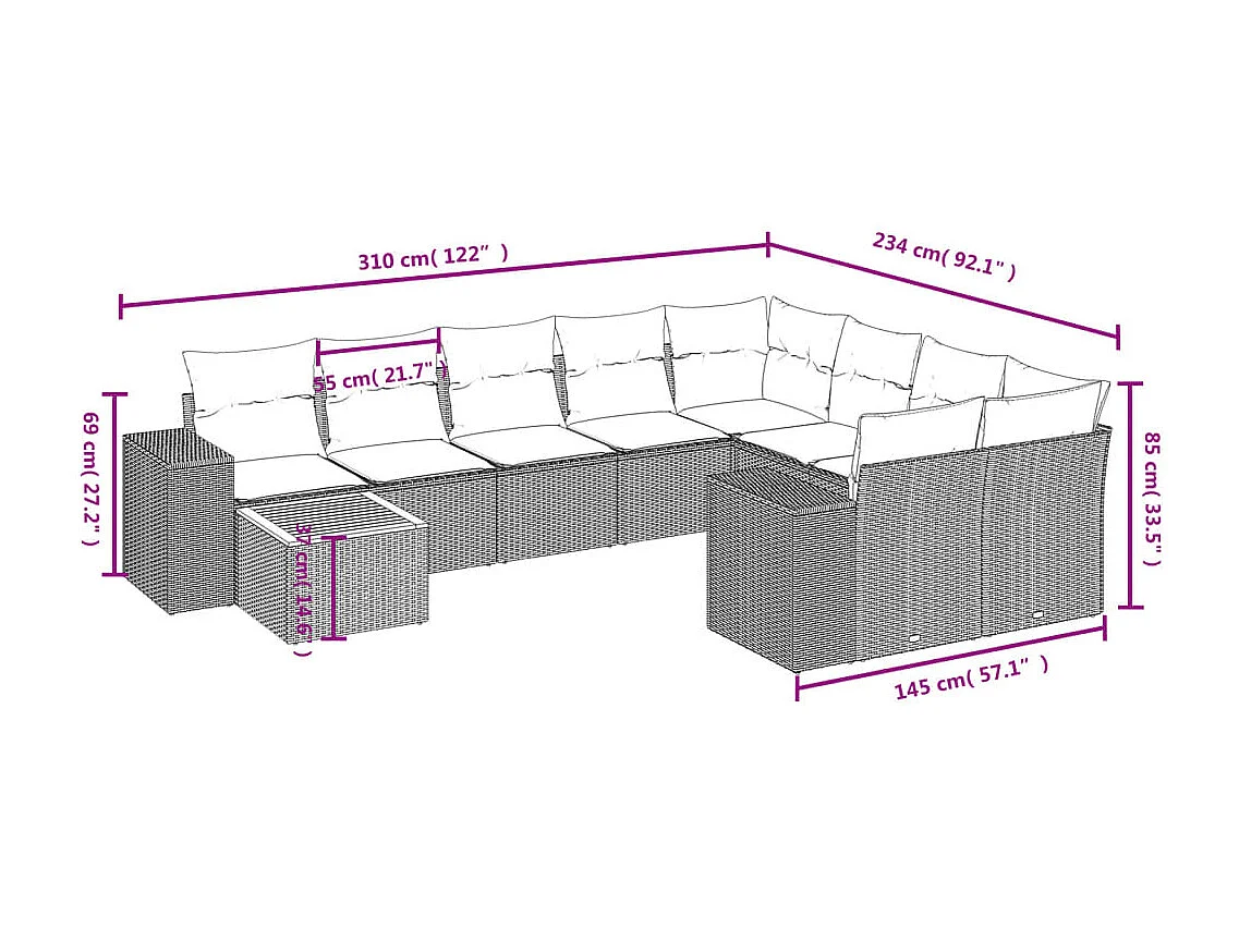 Salon de jardin avec coussins 10 pcs gris résine tressée
