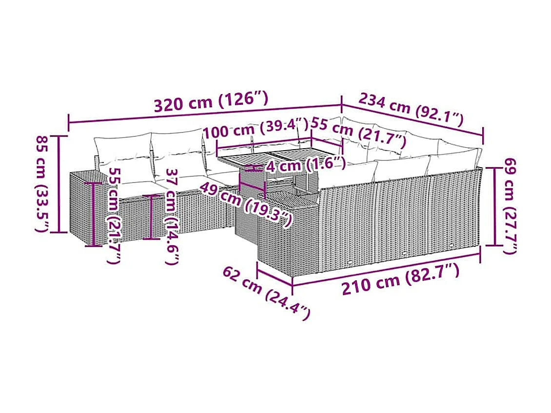 Salon de jardin avec coussins 10 pcs gris résine tressée acacia
