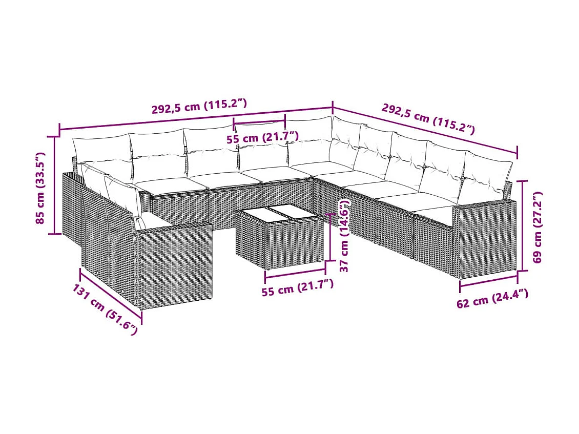 Salon de jardin avec coussins 12 pcs gris clair résine tressée