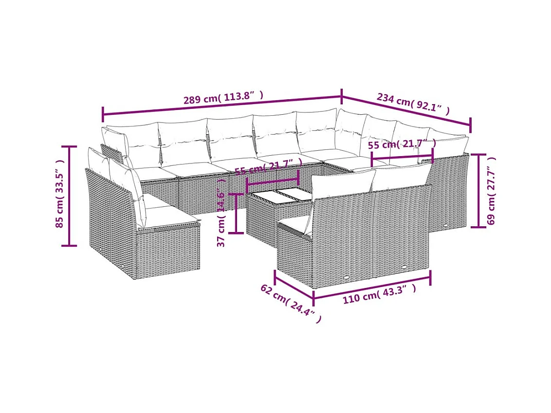 Salon de jardin avec coussins 13 pcs marron résine tressée