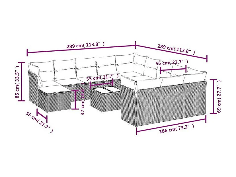 Salon de jardin avec coussins 13 pcs marron résine tressée