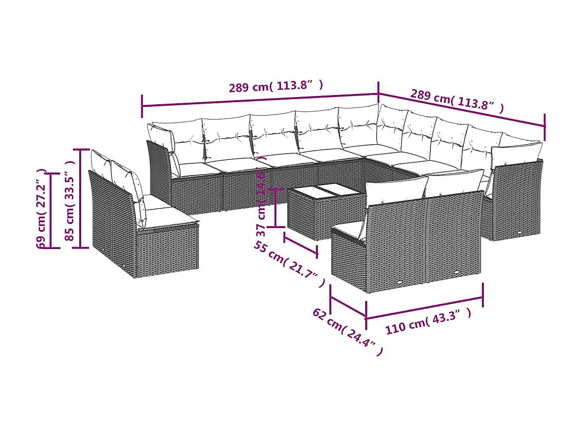 Salon de jardin avec coussins 14 pièces marron résine tressée