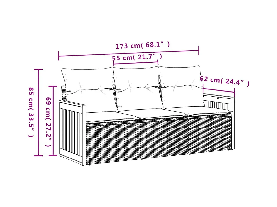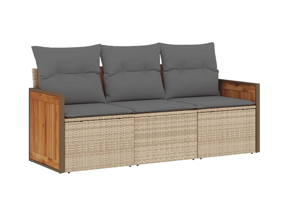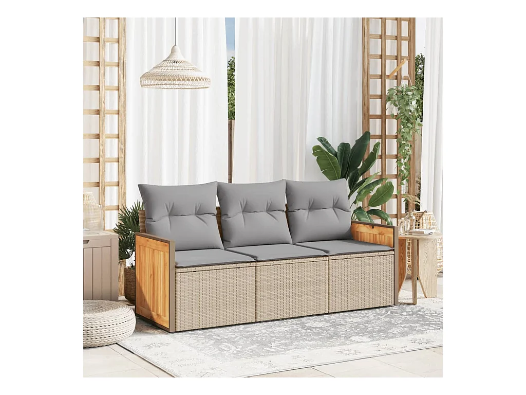 Salon de jardin avec coussins 3 pcs beige résine tressée FR22652