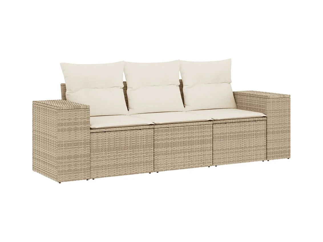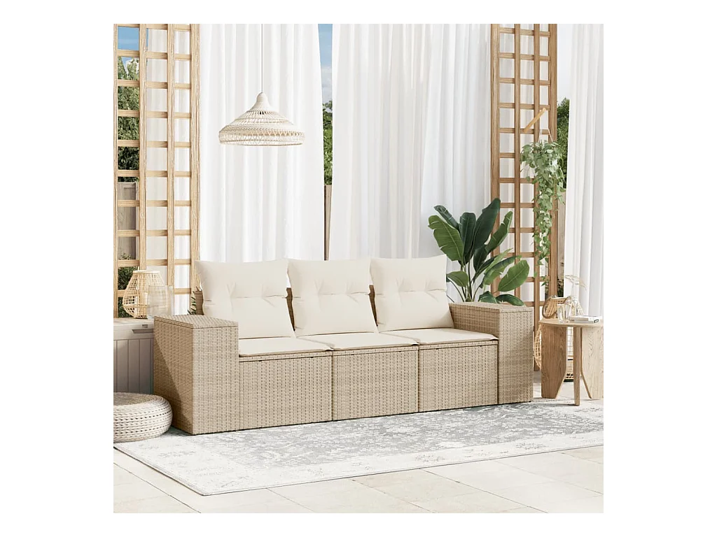 Salon de jardin avec coussins 3 pcs beige résine tressée FR29878