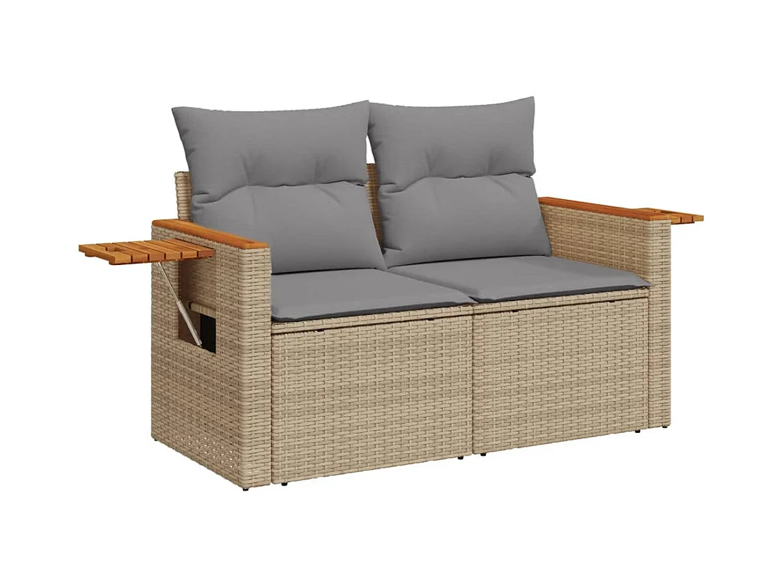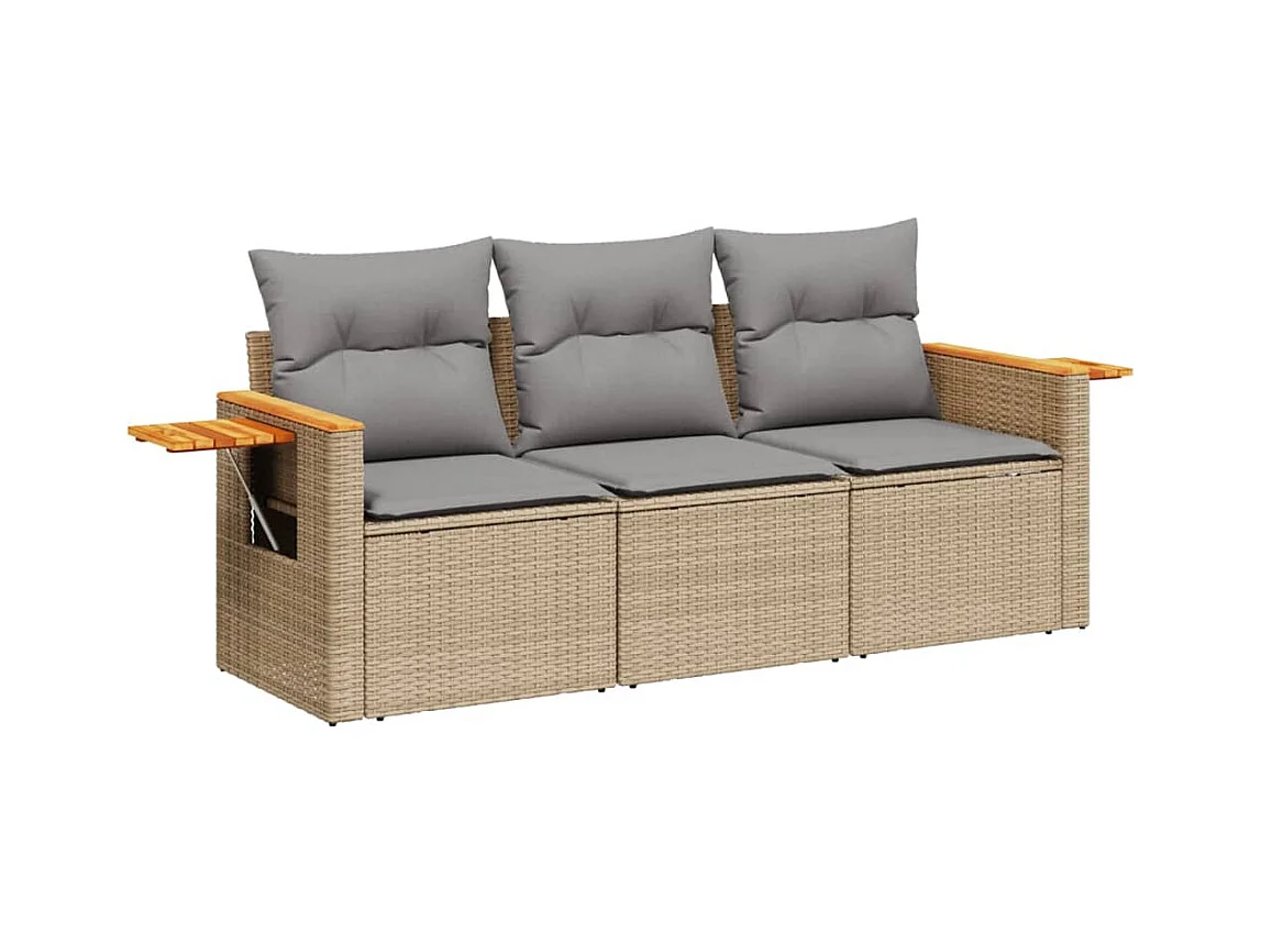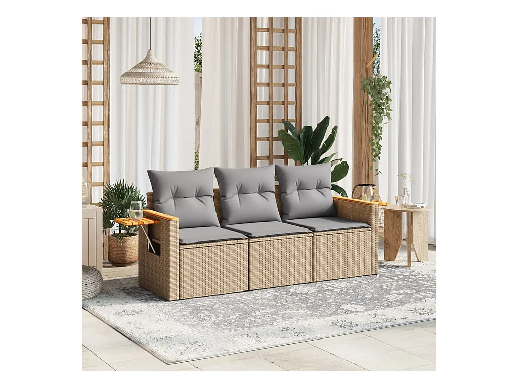 Salon de jardin avec coussins 3 pcs beige résine tressée FR66792